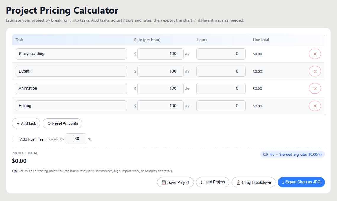 I built a free tool that helps you quote projects with clarity and accuracy. It’s built for creatives and modeled after the same logic we use at Made By Things to scope real work.